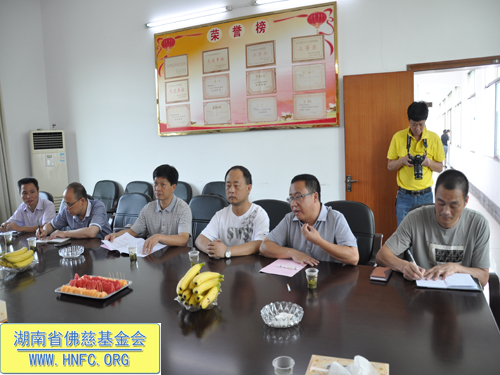 12日上午,捐赠仪式在资兴市皮肤病防治所会议室举行,首先资兴市皮肤病防治所尹所长介绍了江背山麻风村面临的困难情况。湖南省佛慈基金会会长圣辉大和尚代表湖南省佛慈基金会,向资兴市江背山麻风村捐助5万元,用于为麻风村病人添置基本生活物资。