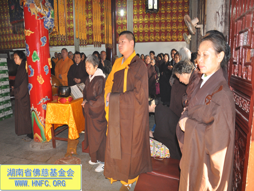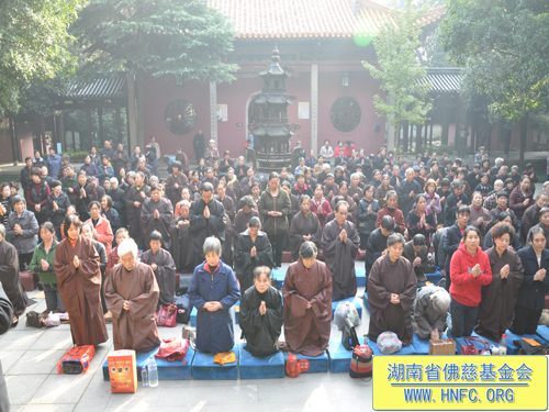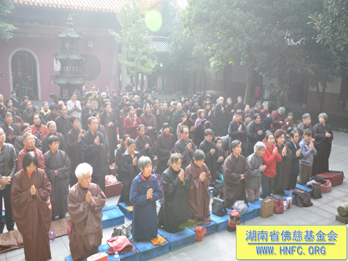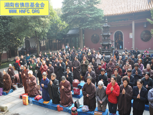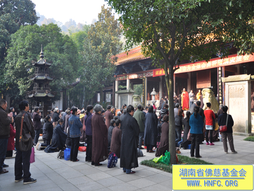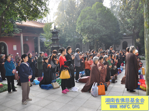 2012年11月13日农历九月三十日上午,湖南省佛慈基金会每年一度在古麓山寺为众居信士会员举办“祈福消灾延寿药师佛法会”。大清早湖南省佛慈基金会的会员们争先恐后的来到了古麓山寺。长沙、湘潭、株洲、宁乡、湘阴、益阳等地区的会员踊跃地交纳会费。当天阳光明媚,古麓山寺佛光普照,会员们法喜充满。