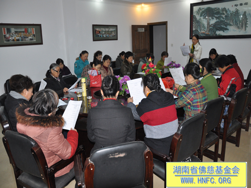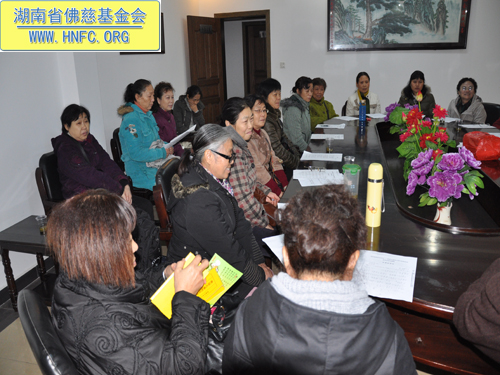 九点半会议正式开始,会上周仲山秘书长向组长们做了汇报,今年湖南省佛慈基金会的各项工作已在组长们和工作人员的努力下圆满顺利的完成。同时也感谢广大组长们及会员们一年来的大力支持,有了您们的慈悲喜舍,才使得无数的弱势群体感受到了温暖与关怀,有了您们无私的付出,才使得湖南省佛慈基金会的慈善事业更加壮大。同时也体现了我们工作人员明因果,平时在工作中本着节省和惜福及细致的态度,努力把善款用到救苦救难中,让每一位前来捐助的善心人士放心。