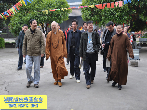 2013年3月28日上午,全国人大代表、中国佛教协会副会长、湖南省佛教协会会长、湖南省佛慈基金会会长圣辉大和尚,湖南省宗教局傅雷副局长,湖南省宗教局一处副处长唐志兵,长沙市宗教局局长穆豫湘带领山东省宗教局领导一行莅临我会参观指导,就慈善工作互做交流汇报。