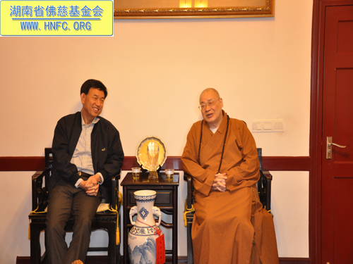 2013年4月25日上午,湖南省民政厅副厅长李劲夫及省民政厅社会民间组织管理局局长刘素荣等一行领导到麓山寺拜访圣辉大和尚并对省佛慈工作调研。中国佛教协会副会长、湖南省佛教协会会长、湖南省佛慈基金会会长圣辉大和尚及省佛慈基金会秘书长周仲山热情地接待了来访的领导,相互之间就今年的慈善工作做了详细的交流和安排。