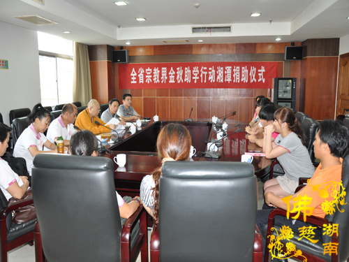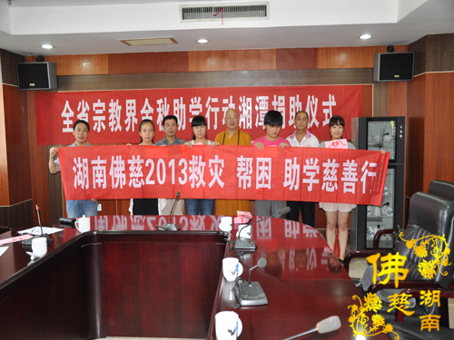 2013年8月29日上午,中国佛教协会副会长、湖南省佛教协会会长、湖南省佛慈基金会会长圣辉大和尚以及湖南省佛慈基金会周仲山秘书长带领省佛慈基金会工作人员一行,第一站到达湘潭市助学。湖南省佛慈基金会积极响应全省宗教团体共同实施的“情系灾区群众,圆梦莘莘学子”的金秋助学行动。省佛慈向湘潭市助学的捐赠仪式在湘潭市政府大楼举行。