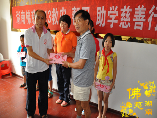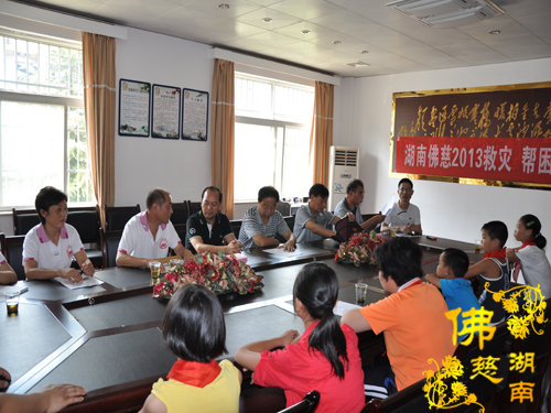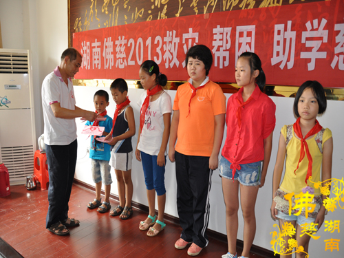 2013年8月29日下午,省佛慈基金会周仲山秘书长带领省佛慈基金会工作人员一行,第二站到达湘潭县助学。捐赠仪式在湘潭县关心下一代工作委员会办公室举行。省佛慈基金会给予湘潭县大学生、中学生、小学生共100名贫困生,每人500元资助。共捐助善款5万元。