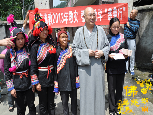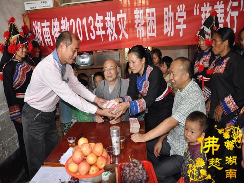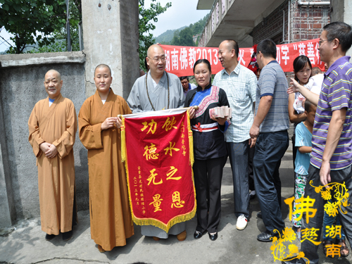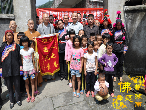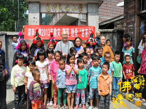 2013年9月8日上午,中国佛教协会副会长、湖南省佛教协会会长、湖南省佛慈基金会会长、南普陀寺慈善会会长圣辉大和尚带领湖南省佛慈基金会周仲山秘书长和省佛慈基金会的工作人员及南普陀寺慈善会的静仁法师、道晴法师、通灵法师,第七站到达宜章县梅田镇龙村瑶族村民族团结小学,捐善款资助团结小学修建饮水工程。
