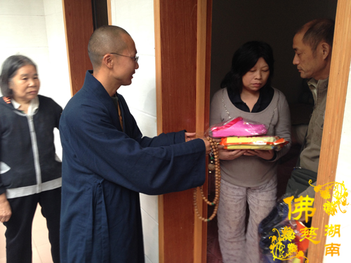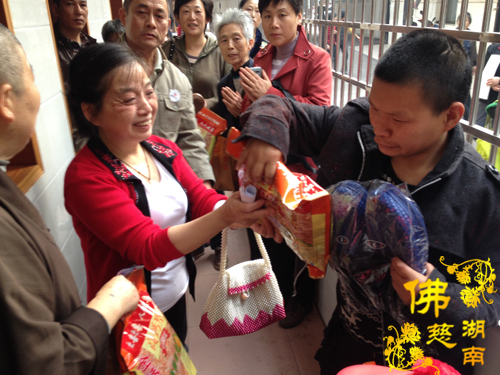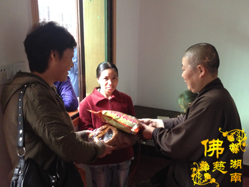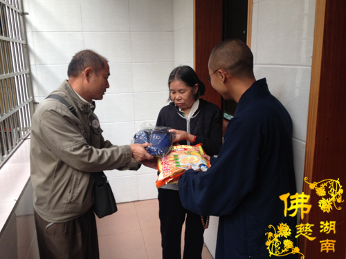 2013年10月29日上午,湖南省佛慈基金会周仲山秘书长、办公室主任曹银艳受会长圣辉大和尚的嘱托,带领益阳市众会员前往益阳市资阳区社会福利院慰问一百多名智障三无人员及残疾孤老。