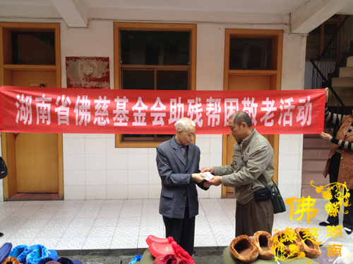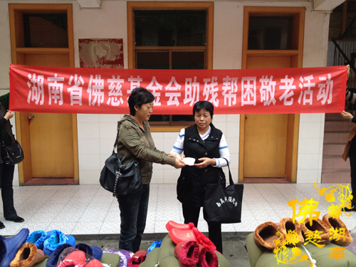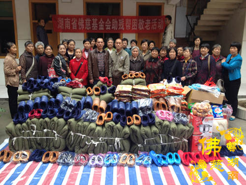 湖南省佛慈基金会及益阳市众会员给益阳市资阳区社会福利院的一百多名智障三无人员、残疾孤老,带去了棉被、衣服、棉拖鞋、麦片大礼包、洗衣粉、蒸锅、健身槌等,共资助物资:7500元。益阳市资阳区社会福利院的李副院长代表一百多名智障三无人员、残疾孤老,对此次慰问表示衷心的感谢。