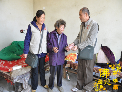 12月2日上午,湖南省佛慈基金会几位工作人员又前往湘潭市、县资助彭永红、乐永湘、陈光启、许昭云、贺春秀、张俊逸、倪汤军、郭再福、李和平、黄兰英,共10户贫困家庭,每户各1000元。