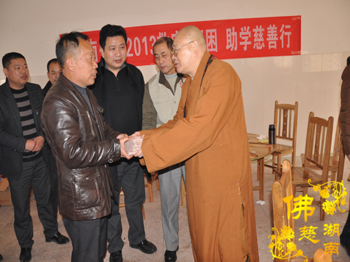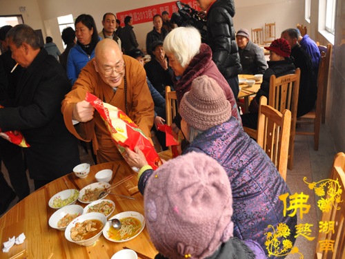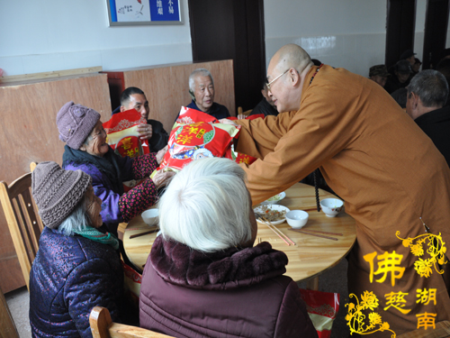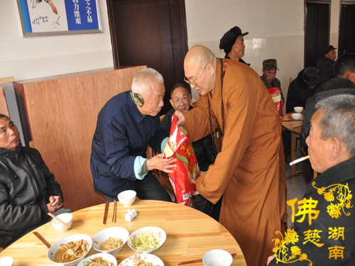 2013年12月26日上午,中国佛教协会副会长、湖南省佛教协会会长、湖南省佛慈基金会会长圣辉大和尚,带领湖南省佛慈基金会周仲山秘书长以及湖南省佛慈基金会工作人员,再次赶赴平江县童市镇敬老院。