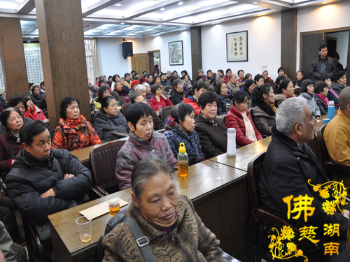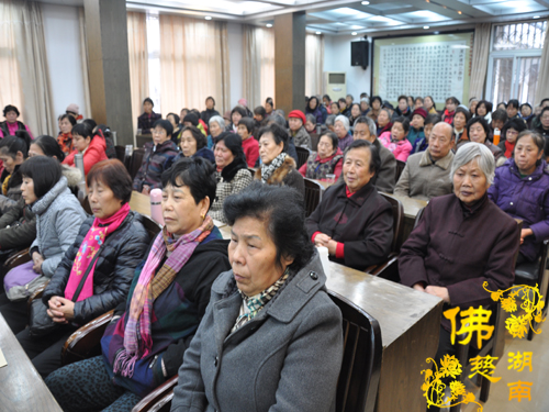 圣辉大和尚在会上做重要开示:首先祝大家新年愉快!健康平安!大和尚着重强调了组长们在每年的慈善工作中所做出的贡献,广大会员的爱心也最具正能量。组长及会员们做善事是替天下儿女尽孝,为社会和谐做贡献。我们把做慈善当做修行,发自内心欢喜去做,就能净化心灵、提升素质。组长、骨干们要勇当慈善工作的带头人,把湖南省佛慈基金会办大办强,让更多的弱势群体得到帮助,把慈悲关爱播撒得更宽、更远。 最后告诉大家:2014年古麓山寺将定期举行讲经活动,希望大家踊跃参加。