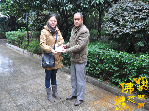 2014年1月12日上午,醴陵县贫困大学生郭雅纯第三次来到湖南省佛慈基金会,领取了资助给她的助学善款3000元。她衷心地感谢省佛慈基金会会长圣辉大和尚以及湖南省佛慈基金会给予她的这份关爱和支持。她表示一定会加倍努力学习,不辜负大家对她的期望,将来学成后回报社会。