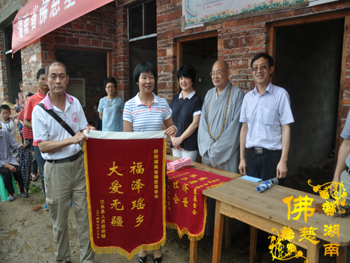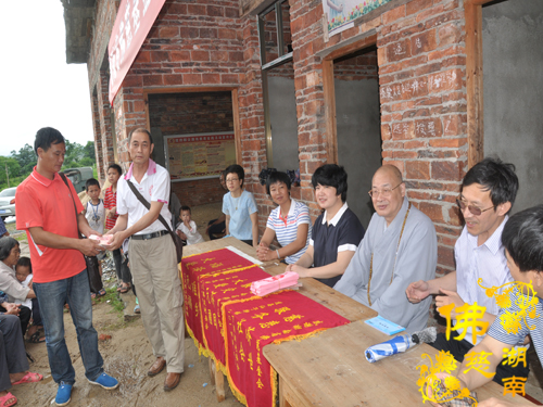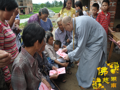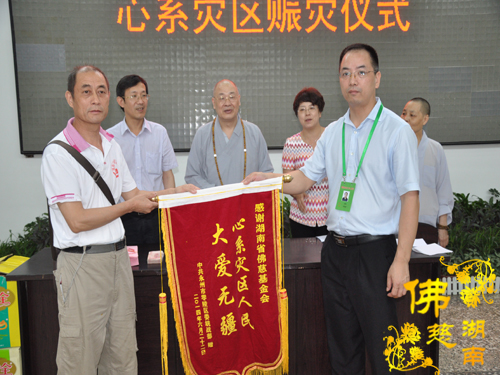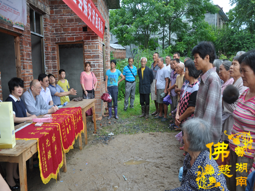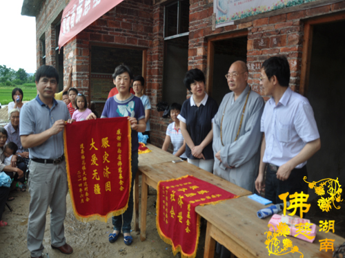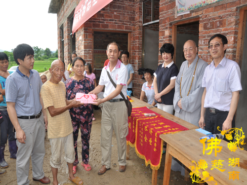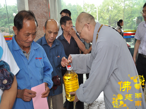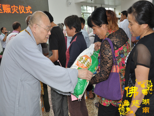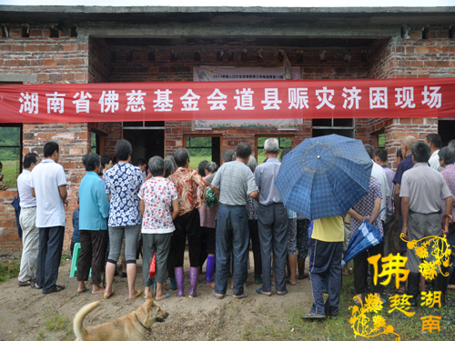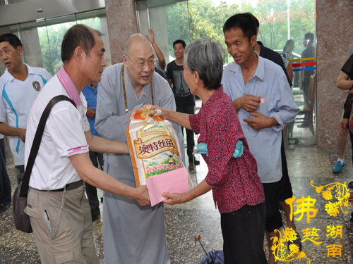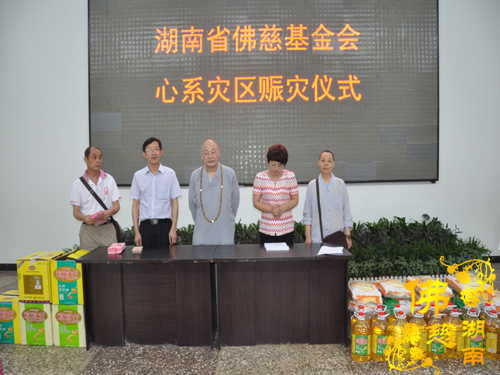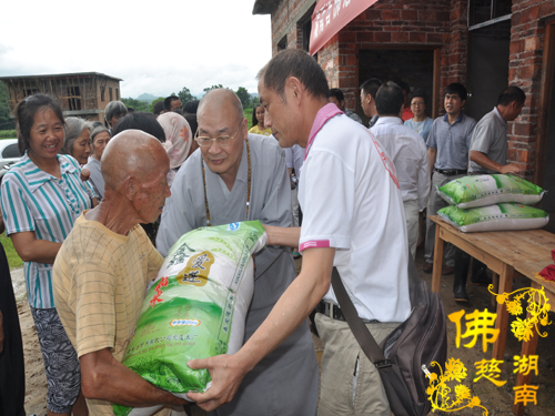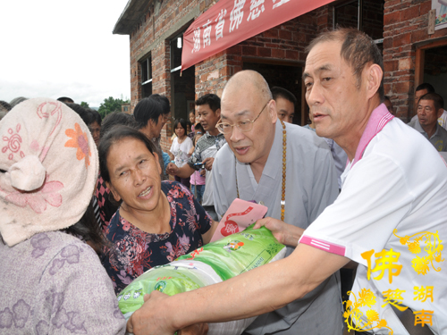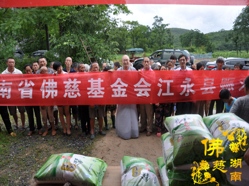 2014年6月21日上午,中国佛教协会副会长、湖南省佛教协会会长、湖南省佛慈基金会会长圣辉大和尚以及湖南省佛慈基金会周仲山秘书长带领省佛慈基金会工作人员一行,冒着大雨赶赴第六站到达永州市。湖南省佛慈基金会会长圣辉大和尚亲自带领一行人,奔赴永州市三县一区受水灾现场,查看遭受水灾情况。