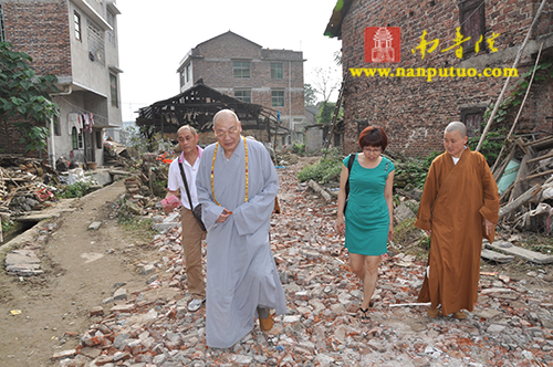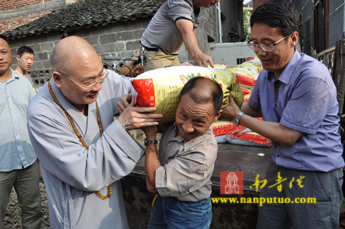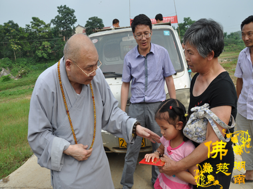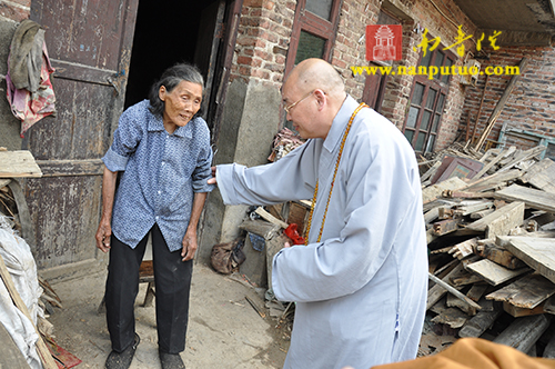 会长圣辉大和尚急灾民之所急,路上不休不眠一心想将善款尽快送到灾民手中。大和尚先后来到马栏村和陈家坊村为受灾群众发放慰问金及慰问品,不断的询问乡亲们家中受灾情况,并鼓励他们坚定战胜困难的信心,在党和政府及广大爱心人士的帮助下,尽快解决当前困难,重建美好家园。