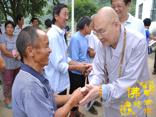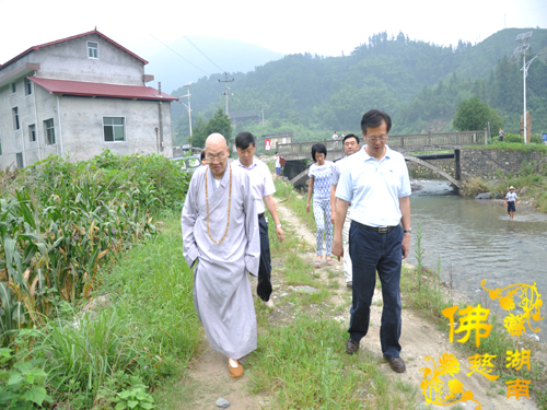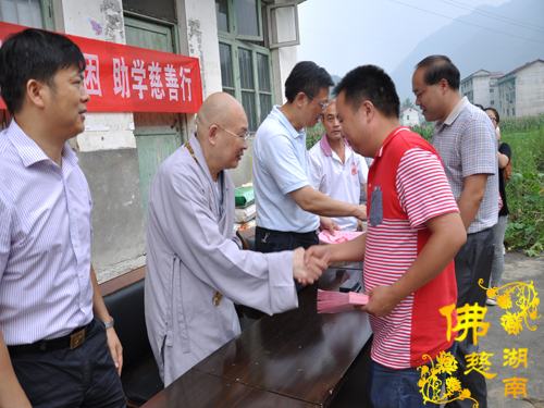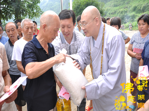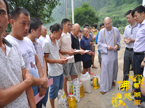 2014年7月24日上午,全国人大代表、中国佛教协会副会长、湖南省佛教协会会长、湖南省佛慈基金会会长圣辉大和尚带领湖南省佛慈基金会周仲山秘书长以及省佛慈基金会工作人员一行,第二十五站到达安化县,资助安化县几个村的受灾群众。