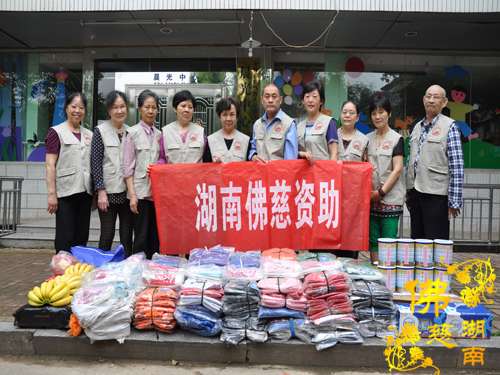 2015年5月21日上午,受全国人大代表、中国佛教协会副会长、湖南省佛教协会会长、湖南省佛慈基金会会长圣辉大和尚的嘱托,在“6.1”儿童节即将来到之前,湖南省佛慈基金会周仲山秘书长及办公室主任曹银艳每年惯例带领会员们,看望慰问长沙市彩虹孤残儿童服务中心的残疾孤儿们,给他们送去了奶粉、新衣物、新鞋、水果等,让孤残儿童感受到社会大家庭的温暖和爱,愿他们快乐成长,过一个温馨的节日