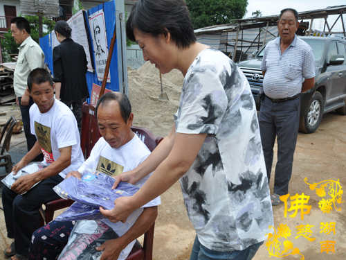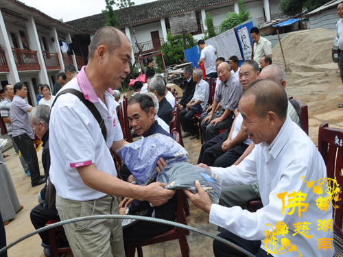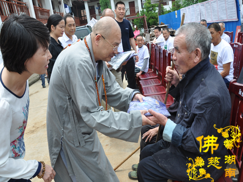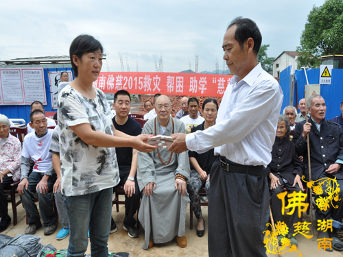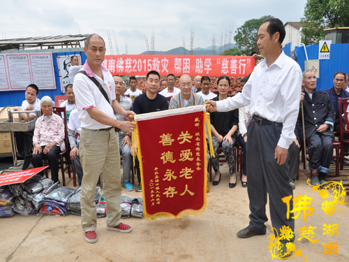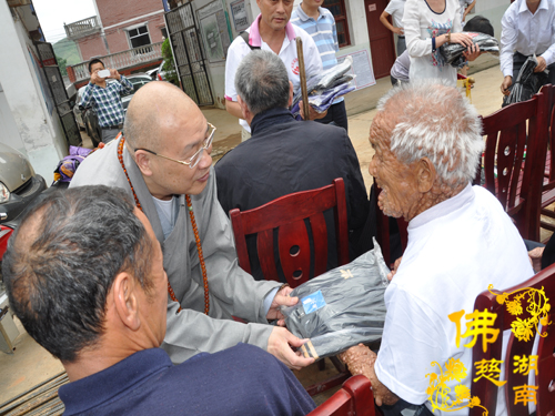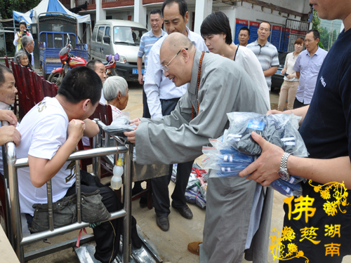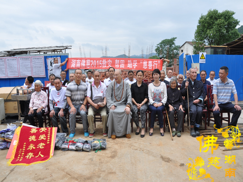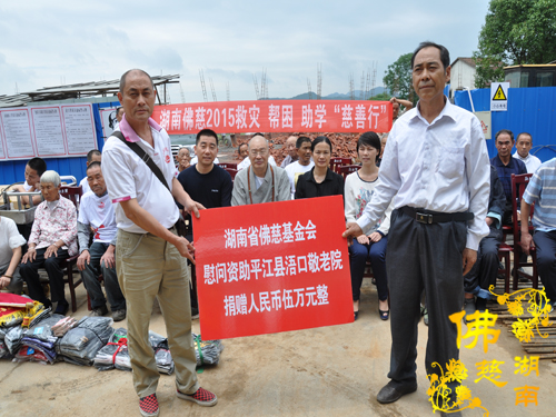 2015年7月6日下午,全国人大代表、中国佛教协会副会长、湖南省佛教协会会长、湖南省佛慈基金会会长圣辉大和尚带领湖南省佛慈基金会周仲山秘书长、办公室主任曹银艳以及湖南省佛慈基金会工作人员等一行,湖南佛教慈善行第十六站来到湖南省平江县浯口镇敬老院。湖南省佛慈基金会向平江县浯口镇敬老院捐5万元,用于该敬老院的建房资金。湖南省佛慈另捐300件新衣,折合1.5万元。