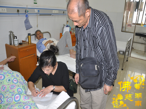 王培团今年74岁,在中核国营七一六矿从事采掘第一线的工作达30多年,对军工行业做出了无私的奉献。他所从事的采掘铀矿的工作辐射大污染严重会影响人体的免疫力,现已古稀之年的王培团一直以来身体不好,患有职业病长期咳嗽不断,2015年被医院诊断为患小细胞癌症,已用去大量医药费,家庭已举步维艰。圣辉大和尚得知情况后,嘱托湖南省佛慈基金会给予老工人王培团医药费资助。