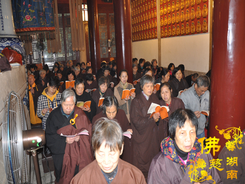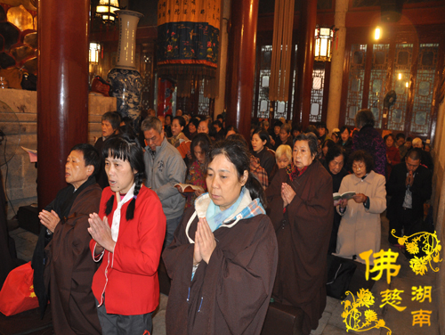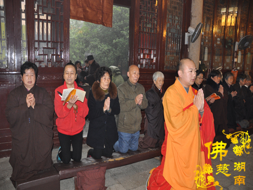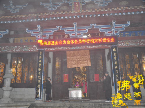 2015年11月11日清晨,湖南省佛慈基金会每年一度在古麓山寺为省佛慈众居信士会员举办“消灾祈福延寿药师佛法会”。湖南省佛慈基金会的会员们陆续来到了古麓山寺。长沙、湘潭、株洲、宁乡、湘阴、益阳等地区的会员先后踊跃地交纳会费及慈善款。清晨微风徐送,薄雾蒙蒙。古麓山寺空气清新、带点寒意,会员们内心为善最乐,十分虔诚的礼佛。大雄宝殿内气氛庄严,次序井然。法师们诵经回向世界和平、国泰民安、风调雨顺、灾戾不起,全体会员身体健康、家庭和睦、平安吉祥、法喜充满。