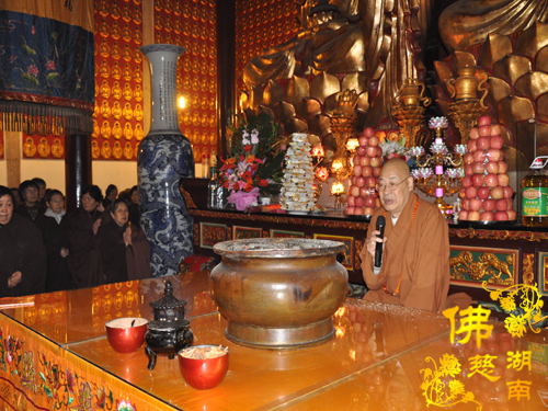 上午中国佛教协会副会长、湖南省佛教协会会长、古岳麓山寺方丈、湖南省佛慈基金会会长圣辉大和尚为会员作了开示,激励广大的湖南省佛慈基金会会员们学药师佛的精神拔众生苦,用大悲心来行菩萨道,平时多做利益众生的善事,修心的同时修福修慧,在利于自己的同时也度化别人。希望广大会员发大菩提心,每个人都来出一份力,把每颗慈心凝聚成大爱,在行动上真正的广行菩萨道,不为名不为利,用无缘大慈,同体大悲的精神为社会做出应有的贡献。