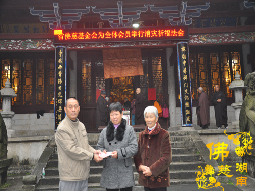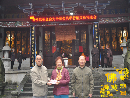 法会结束后,省佛慈基金会资助了株洲县绿口镇仙井村贫困村民易秋连,家庭困难补助费1000元。同时资助了湘潭市板塘铺乐美英特困家庭补助费1000元。