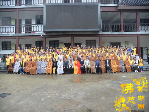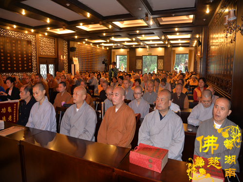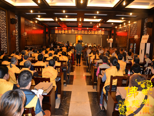 省委统战部副调研员蔡素实女士、省民宗委一处处长柏桓先生、省民宗委团体办主任钟扬先生、长沙市民宗局党组书记刘佳勇、省委统战部民宗处副处长王志刚、中国佛教协会副会长、湖南省佛教协会会长圣辉大和尚,中国佛教协会副秘书长、省佛教协会副会长、岳阳市佛教协会会长怀梵法师,省佛教协会副会长、湘潭市佛教协会会长渊博法师,省佛教协会副会长、长沙市佛教协会会长坚愿法师,省佛教协会副会长、长沙市佛教协会副会长能净法师,省佛教协会副会长、南岳上封寺方丈怀泉法师,省佛教协会副会长、益阳白鹿寺方丈明良法师,省佛教协会副会长、株洲资福寺方丈妙开法师,省佛教协会秘书长、南岳区佛教协会会长、南台寺方丈怀辉法师、省佛协副秘书长、长沙铁炉寺住持自然法师、省佛协副秘书长郑波女士及省佛教协会常务理事等领导及嘉宾近几百人出席闭幕式。闭幕式由岳麓区佛教协会会长、麓山寺监院永兴法师主持。