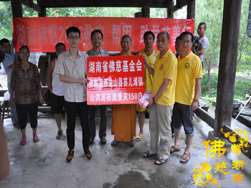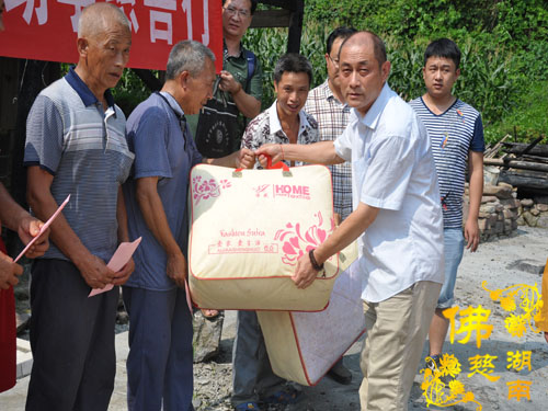 因6月中旬龙山县苗儿滩镇、里耶古镇、洛塔乡遭遇特大暴雨,导致村民家进水,房屋倒塌,多处发生山体滑坡,生产和生活造成严重困难,湖南佛慈这次前来,帮助灾区人民渡过暂时困难,建设美好家园。