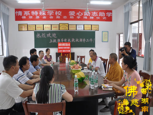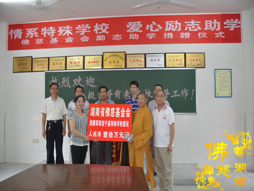 日上午,受圣辉大和尚委托湖南省佛教协会副会长怀泉法师、湖南省佛慈基金会周仲山秘书长等一行第十一站来到绍阳绥宁县特殊学校资助