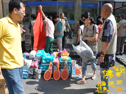 2017年5月28日上午,受圣辉大和尚的嘱托,湖南省佛慈基金会办公室主任曹银艳、工作人员李长辉带领众会员们在“六一”儿童节即将到来之际,前往长沙市天心区涂家冲社会第一福利院,看望慰问残疾孤儿们,给他们带去了进口奶粉、尿不湿、新衣裤裙、新围巾、玩具等生活用品,物资折合共捐1.35万元。