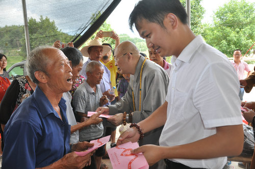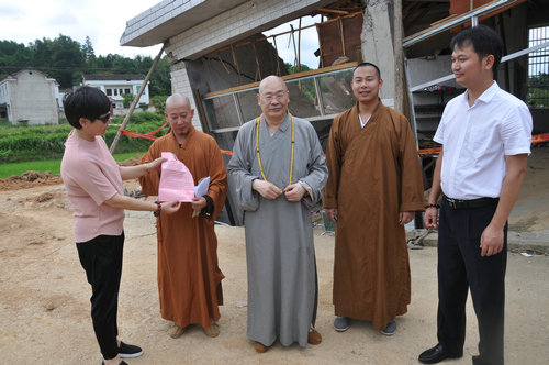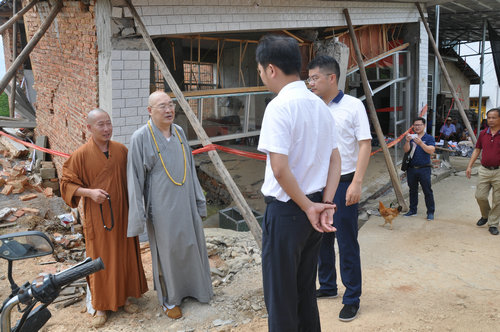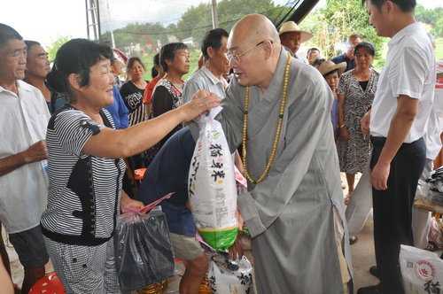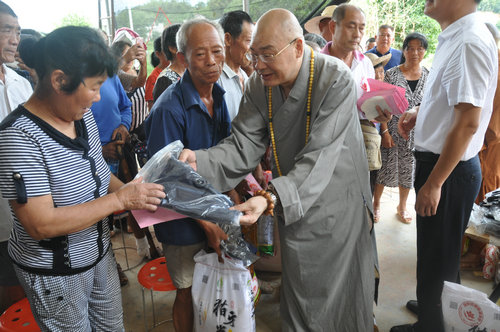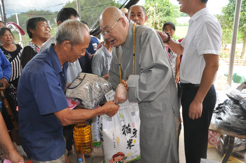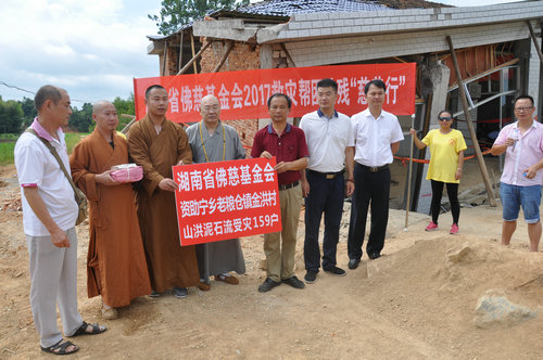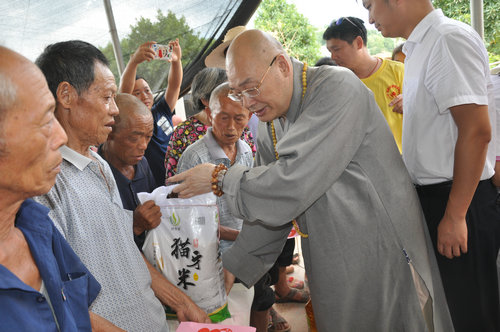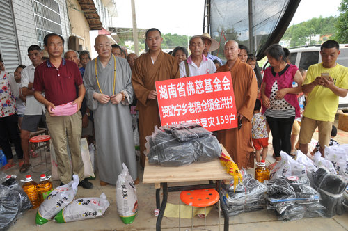 2017年7月18日上午,中国佛教协会副会长、湖南省佛教协会会长、湖南省佛慈基金会会长圣辉大和尚不顾劳累,顶着烈日,连续救灾,在宁乡县佛教协会副会长、白云寺住持光度法师以及湖南省佛慈基金会秘书长周仲山等同志陪同下,带领湖南省佛慈基金会志愿者等一行人,湖南佛教慈善行第四站来到宁乡老粮仓镇赈灾。