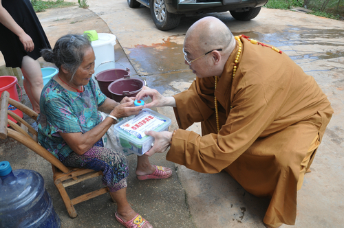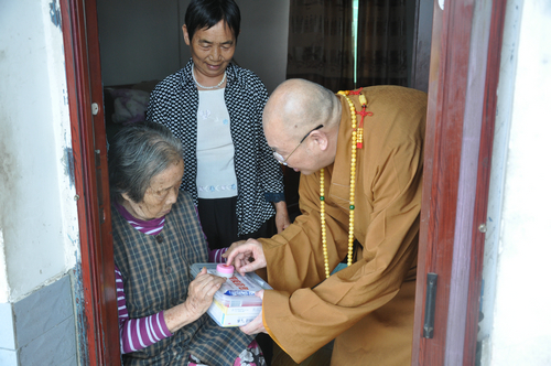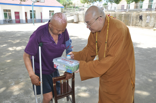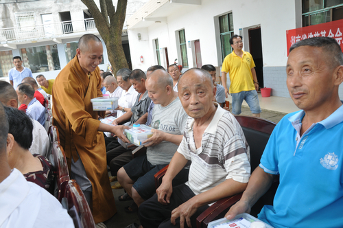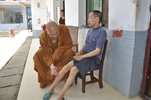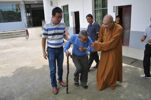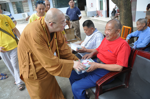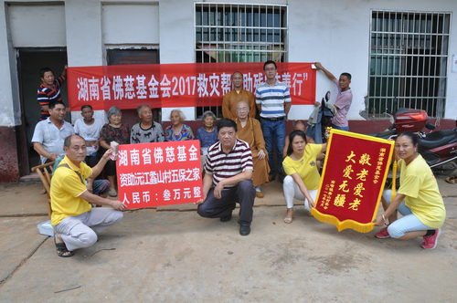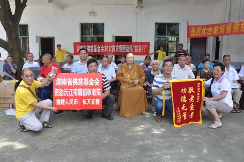 2017年7月19日下午,中国佛教协会副会长、湖南省佛教协会会长、湖南省佛慈基金会会长圣辉大和尚,在连续前往多处开展赈灾活动后,心里依旧还记挂着灾区敬老院的老人们和五保户的生活情况。在沅江市景星寺监院登贤法师以及湖南省佛慈基金会秘书长周仲山等同志陪同下,带领湖南省佛慈基金会志愿者等一行人,前往沅江市南嘴镇敬老院慰问老人。