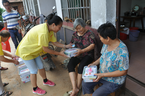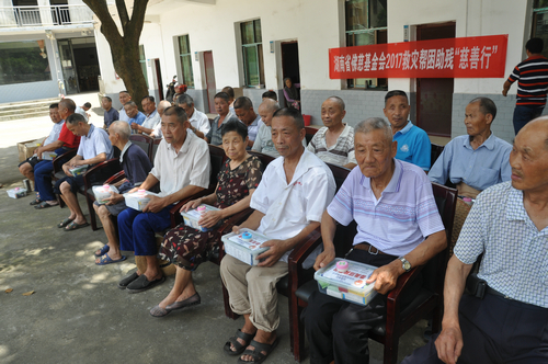 在现场,湖南省佛慈基金会给予入住沅江市南嘴镇敬老院及南嘴镇螽山村五保之家、共85位老人捐赠急救药箱85套、肤保122瓶、另捐赠给南嘴镇敬老院5万元及螽山村五保之家3万元,用于两个养老场所硬件设施维修,本次捐赠款物共计9.9万元。