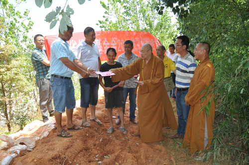 原来在沅江市南嘴镇有一个叫拦洪坝的地方,当洪水来袭的时候,一段大约近30米的堤坝突然垮塌,洪水拥入坝内,淹没了居住在附近5户人家的房屋及所有农作物。大和尚得知情况后,当场决定个人捐款5000元,同时湖南省佛慈基金会也捐赠5000元,给予受灾的5户村民每户2000元,共计1万元现金资助。