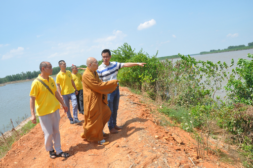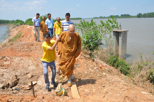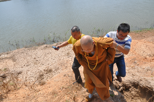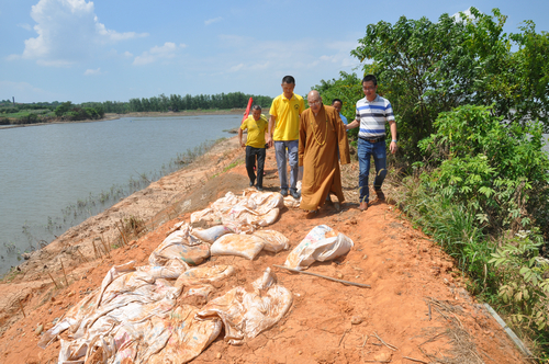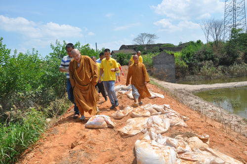 同时大和尚不顾众人的劝说,坚持要求去堤坝垮塌现场,最后在沅江市统战部副部长、民宗局长刘炳丁、统战部副部长吴波、沅江市统战部民族宗教服务中心主任周腊青、沅江市南嘴镇镇长祝国光、沅江市南嘴镇敬老院院长、螽山村支部书记刘小辉等领导的陪同下,前往拦洪坝一线查勘了灾情。