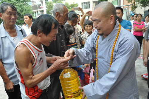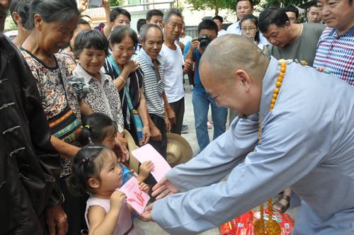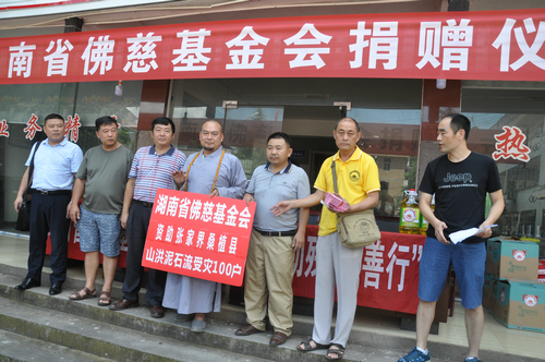 2017年7月21日中午,湖南省佛教协会副会长怀梵大和尚受中国佛教协会副会长、湖南省佛教协会会长、湖南省佛慈基金会会长圣辉大和尚的委托,带领湖南省佛慈基金会秘书长周仲山、副秘书长陈旭、办公室主任曹银艳等同志一行人,湖南佛教慈善行第十二站来到张家界桑植县空壳树乡赈灾。