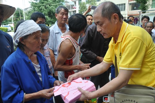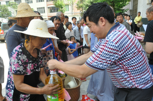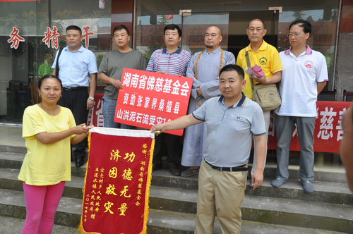 在张家界桑植县空壳树乡,湖南省佛慈基金会给予100户遭受严重洪涝灾害的村民,每户发放现金400元,以及大米一袋,食用油一桶。此次共捐赠善款物资合计5.2万元。