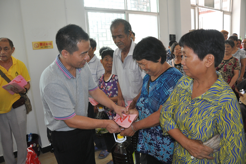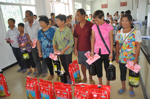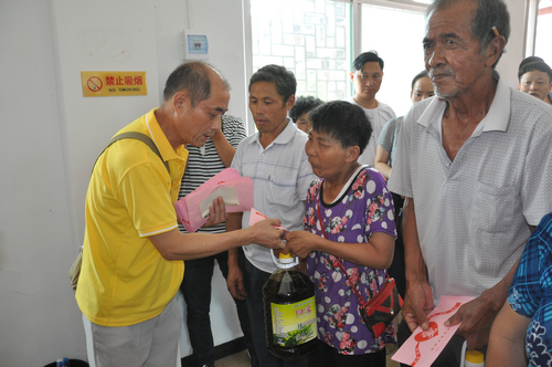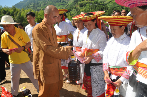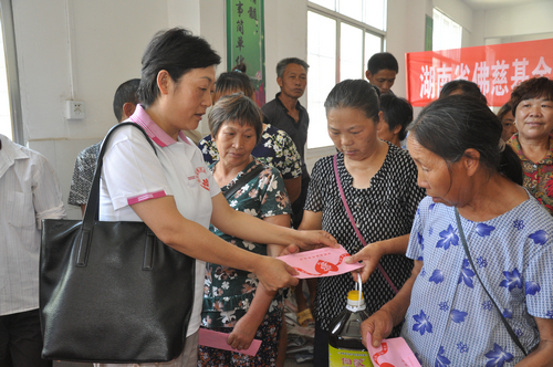 上午到溆浦县沿溪乡捐赠,下午又赶到溆浦县北斗溪镇捐赠现场,湖南省佛慈基金会共给予200户遭受严重洪涝灾害的村民,每户发放现金400元,以及大米一袋,食用油一桶,还捐赠了208件新衣。同时在溆浦县沿溪乡还资助了一位特困学生2000元,此次共捐赠善款物资合计12.6万元。