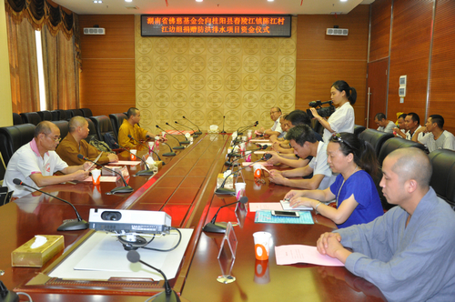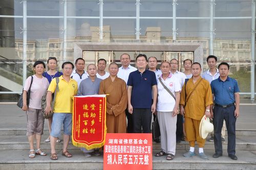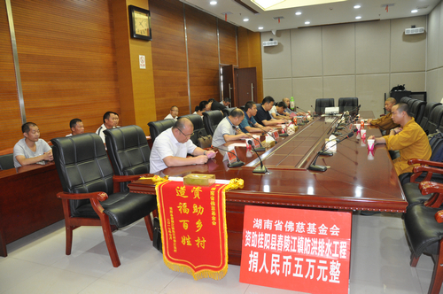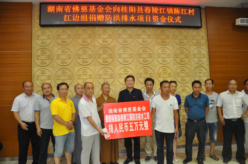 2017年7月27日下午,湖南省佛教协会副会长怀泉大和尚受中国佛教协会副会长、湖南省佛教协会会长、湖南省佛慈基金会会长圣辉大和尚的委托,带领湖南省佛慈基金会秘书长周仲山、办公室主任曹银艳、工作人员李长辉等一行人,来到湖南佛教慈善行第二十站,资助桂阳县舂陵江镇陈江村江边组防洪排水基础建设。