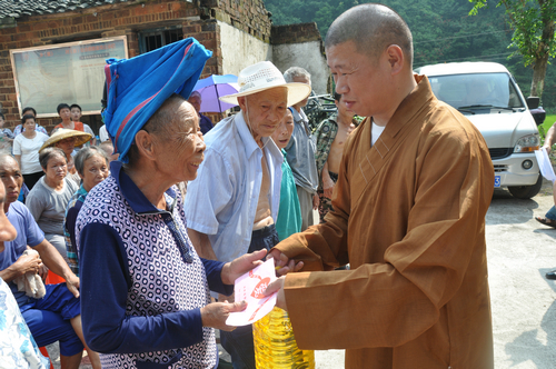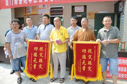 2017年7月28日下午,湖南省佛教协会副会长怀泉大和尚受中国佛教协会副会长、湖南省佛教协会会长、湖南省佛慈基金会会长圣辉大和尚的委托,带领湖南省佛慈基金会秘书长周仲山、办公室主任曹银艳、工作人员李长辉等一行人,来到湖南佛教慈善行第二十二站,永州新田县骥村镇和瑶族乡赈灾。