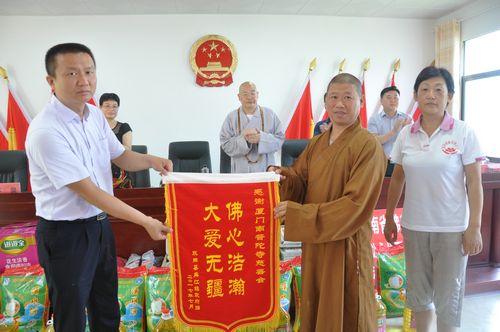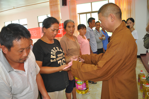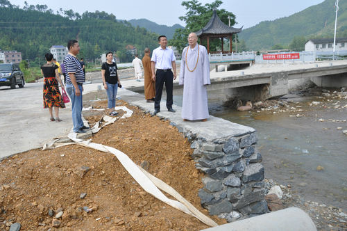 2017年7月29日上午,中国佛教协会副会长、湖南省佛教协会会长、湖南省佛慈基金会会长圣辉大和尚、湖南省佛教协会副会长怀泉大和尚,顶着烈日,汗流浃背,不辞辛苦,带领湖南省佛慈基金会秘书长周仲山、办公室主任曹银艳、工作人员李长辉等一行人,来到湖南佛教慈善行第二十三站,永州双牌县麻江镇、茶林镇、塘底乡赈灾。