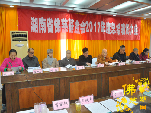 中国佛教协会副会长、湖南省佛教协会会长、湖南省佛慈基金会会长圣辉大和尚、湖南省民宗委团体办主任唐志兵、省民宗委一处副调研员王银生、省民宗委团体办科长郑波、省佛慈基金会副会长能净法师、副会长渊博法师、副会长坚愿法师、副秘书长们等出席了此次会议。大会首先由陈旭副秘书长主持,由副秘书长曹银艳宣读湖南省佛慈基金会2017年度工作总结及2018年工作设想。我会今年共捐助的资金已达586.32万元。全省两百多家慈善组织第一批确认18家,湖南省佛慈基金会被确认排湖南省慈善组织第四名。这样好的慈善成绩是离不开会长圣辉大和尚的正确领导,离不开省佛慈广大会员慈悲喜舍和积极努力行菩萨道所集聚的力量。