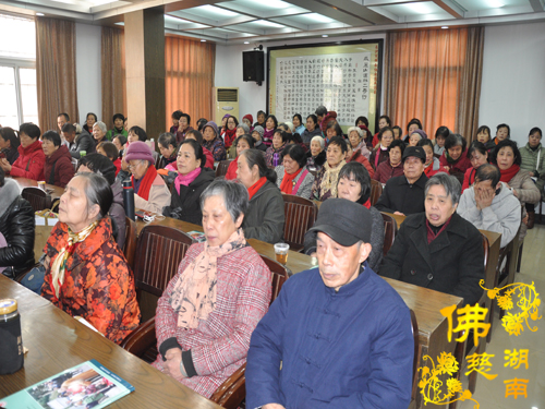 省民宗委团体办主任唐志兵在会上讲话:湖南省佛慈基金会这十七年所取得的慈善成绩得来不容易,都离不开圣辉大和尚的正确领导和众爱心人士的努力,你们帮助的弱势群体遍及湖南十四个地区。圣辉大和尚身体力行,是最早期为麻风病人解忧解难的人。本人代表省民宗委感谢省佛慈长期以来,为湖南佛教慈善事业增光添彩,为社会解忧,帮助了许多边远地区的脱贫解困。省佛慈勇做慈善的带头人。以后要不断开展正知正见的教育,引导居信士修行,不断开通新的慈善服务工作。