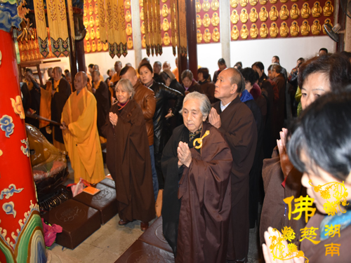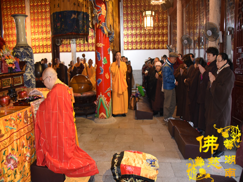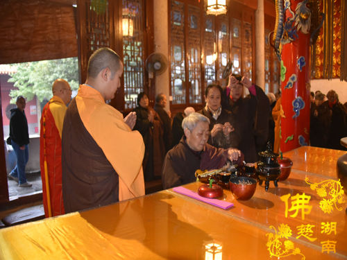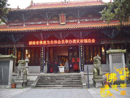 2018年11月07日清晨,湖南省佛慈基金会每年一度在古麓山寺为省佛慈众居信士会员举办“消灾祈福延寿药师佛法会”。湖南省佛慈基金会的会员们陆续来到了古麓山寺。长沙、湘潭、株洲、宁乡、望城等地区的会员先后踊跃地交纳会费及慈善款。清晨寒风徐送,薄雾蒙蒙。古麓山寺空气清新,会员们内心为善最乐,十分虔诚的礼佛。大雄宝殿内气氛庄严,次序井然。法师们诵经回向世界和平、国泰民安、风调雨顺、灾戾不起,回向给全体会员身体健康、家庭和睦、平安吉祥。