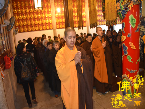 上午八点半,中国佛教协会副会长、湖南省佛教协会会长、古岳麓山寺方丈、湖南省佛慈基金会会长圣辉大和尚带领大家虔诚礼拜消灾延寿药师佛,激励广大的湖南省佛慈基金会会员们学药师佛的精神拔众生苦,用大悲心来行菩萨道,告诫大家平时多做利益众生的善事,修心的同时修福修慧,在利于自己的同时也度化别人。希望广大会员发大菩提心,每个人都来出一份力,把每颗慈心凝聚成大爱,在行动上真正的广行菩萨道,不为名不为利,用无缘大慈,同体大悲的精神为社会做出应有的贡献。