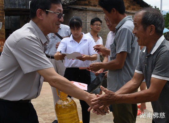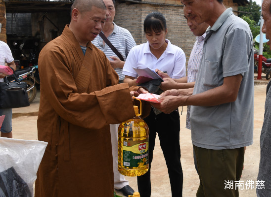 本次湖南省佛慈基金会向新桥村100户受灾家庭,每户捐赠善款400元,累计4万元。另外还捐赠了包括新衣物、大米、食用油、清凉油、保健药品等价值33200元的爱心物资,累计款、物73200元。