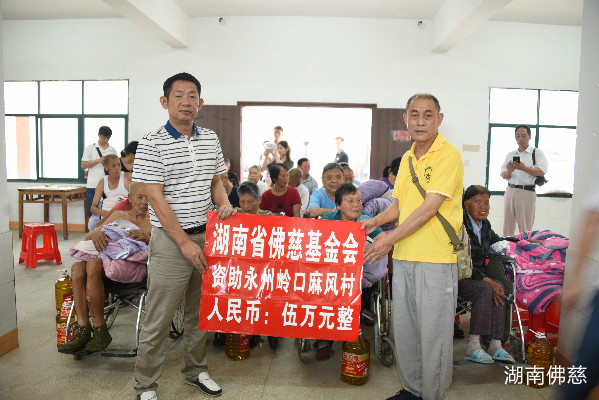 本次湖南省佛慈基金会向永州市岭口麻风村捐赠了现金5万元,于此同时还对接外部资源,捐赠了价值3040元的食用油、毛毯及药品。累计款、物53040元。