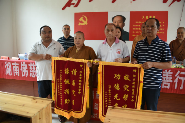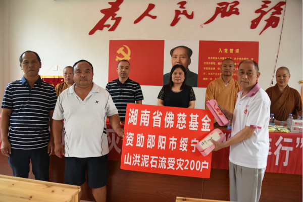 出席本次捐赠活动的有邵阳市统战部民族宗教事务主管领导陈善昭、邵阳市佛教协会会长释志东法师、及长铺子镇政府相关干部职工和受灾群众代表。
