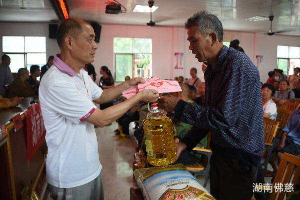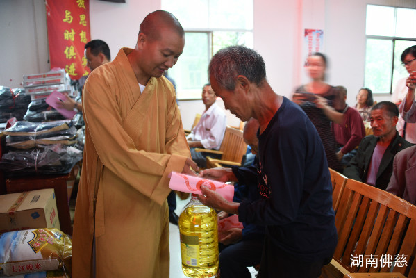 捐赠现场高平镇镇长隆兵其,怀着无比感激的心情,向大家详细介绍了高平镇的受灾情况。随后,湖南省佛慈基金会秘书长周仲山代表社会各界爱心人士向高平镇100户受灾家庭,每户捐赠善款400元,累计4万元。另外还捐赠了包括新衣物、大米、食用油、清凉油、保健药品等价值33200元的爱心物资;于此同时,邵阳市佛教协会会长释志东法师,还带代表邵阳佛教界爱心人士现场捐赠善款1万元。本次捐赠活动累计款、物83200元。举行过简单的捐赠仪式后,大家现场逐一把慈善款物送到了受灾群众手中。