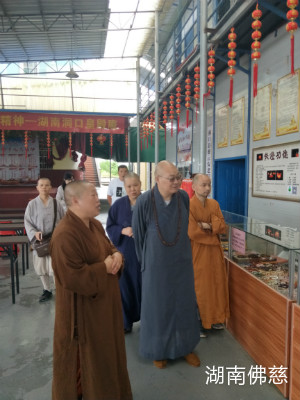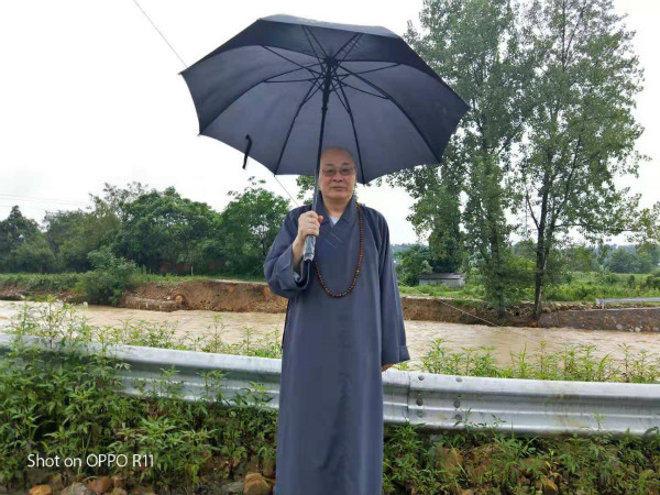 就在大家刚刚完成隆回县高平镇赈灾行动不久,同行的邵阳市佛教协会副秘书长释悟闻法师收到了来自邵阳洞口县灵官寺被洪水侵袭浸水的消息。于此同时,湖南省佛教协会会长、湖南省佛慈基金会理事长圣辉大和尚刚刚在北京参加完重要会议回到长沙后,马上与基金会工作人员取得联系,了解赈灾行程安排,尤其得知洞口遭遇的紧急灾情后,连夜驱车四个多小时赶到邵阳洞口现场查勘灾情,并前往洞口县部分寺庙开展了调研及慰问活动。