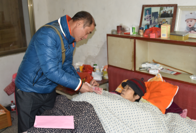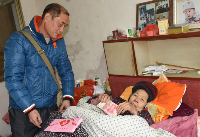 唐香莲本人79岁,年迈体弱且患病多年,生活早已完全不能自理,一直由同样年迈的儿子、儿媳照顾。多年来因治病几乎花光了家中所有积蓄,近期又因再次顽疾复发病危,故辗转多家医院住院治疗,为了能够为年迈多病的母亲治病,其子女均四处借贷举债颇多。至此岁末年终之际,特向湖南省佛慈基金会发出了求助申请。基金会获悉后,迅速组织人员进行了情况核实,作出了给与善款3000元现金资助的决定,由周仲山秘书长代表基金会送到了唐香莲家中病床前,希望能够缓解其燃眉之急。