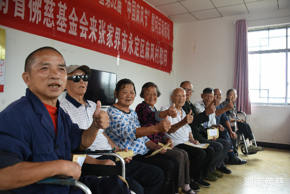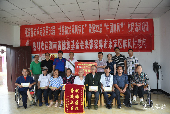 2019年7月12日上午,受湖南省佛教协会会长、湖南省佛慈基金会理事长圣辉大和尚委托。湖南省佛慈基金会秘书长周仲山、常务副秘书长陈旭、工作人员李长辉等一行人,来到了位于张家界市永定区的麻风村,慰问住在哪里已经近50多年的15位无家可归的残障麻风病友。