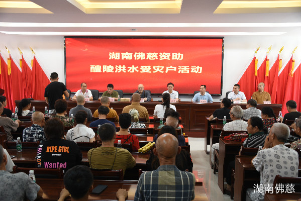 灾情发生后,当地政府积极组织干部群众投入到救灾工作中,全力以赴保障人民群众生命财产安全,安置受灾群众,并确保了没有发生一起因灾死亡事件。湖南省佛教协会得知醴陵的灾情后。2019年7月27日上午,湖南省佛教协会会长、湖南省佛慈基金会理事长圣辉大和尚,亲自率领湖南省佛教协会副会长、株洲市佛教协会会长妙开法师、湖南省佛慈基金会秘书长周仲山、常务副秘书长陈旭、工作人员李长辉等一行人赶到了醴陵市仙岳山街道南门社区,看望慰问受灾群众。